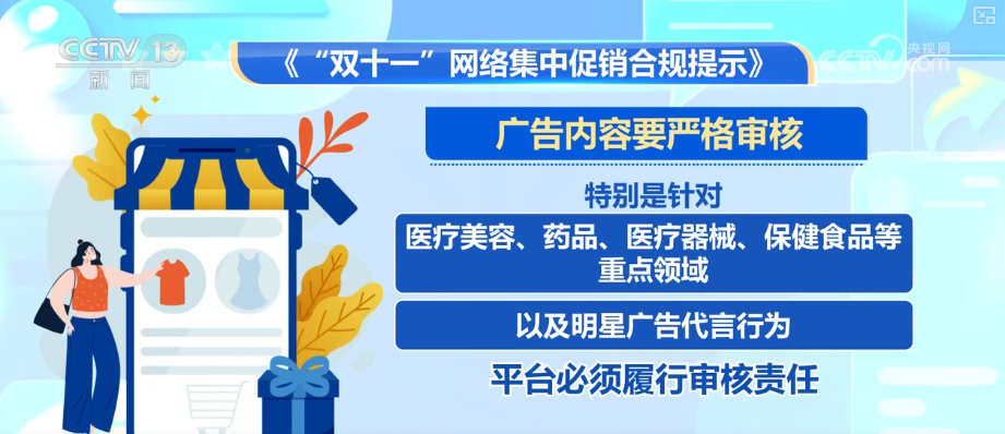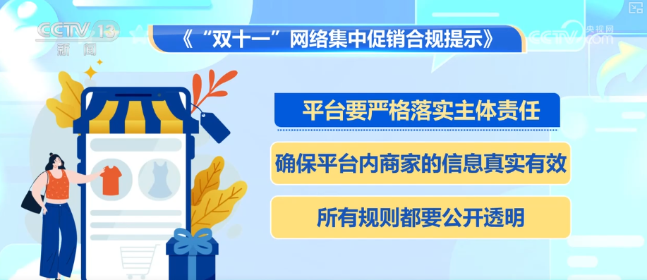市场监管总局发布“双十一”合规提示指出,平台要严格落实主体责任,确保平台内商家的信息真实有效,所有规则都要公开透明。